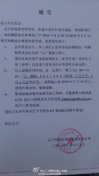 近日位于太原街原东舜楼上的中影百老汇影城正式关闭。该影城官方微博已经发布退卡公告。