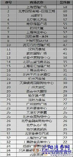 消费网网友lnsy007 同学精心编制了大陆主要城市高端商场排名榜,目前原帖正在消费网论坛进行热烈讨论中。原帖中还包括各个奢侈品牌的分布和各个主要城市豪车进入情况,欢迎到论坛查看原帖。