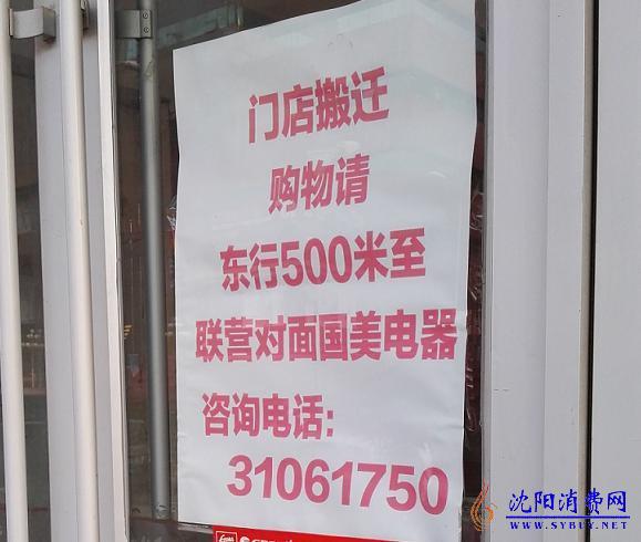 沈阳消费网讯,近日位于太原街万达附近的国美电器中华路店近日闭店,门店搬迁到联营公司对面的国美电器太原街店。目前国美电器中华路店原址已经关闭,并撤下国美的标识和LOGO,门前贴着搬迁公告。