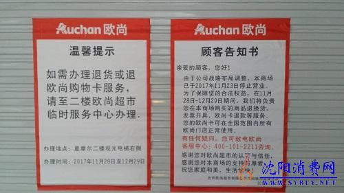 沈阳消费网讯,位于沈阳铁西区星摩尔购物中心的欧尚大型超市正式公告停止营业,目前超市门前已经贴出停业公告。