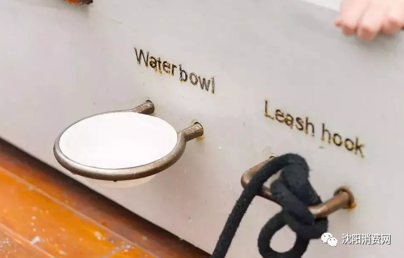 同时,每个座位旁边都很贴心的设置了牵引绳、挂钩和放水的位置,主人进去买咖啡的时候,可以把萌宠栓在这里。
