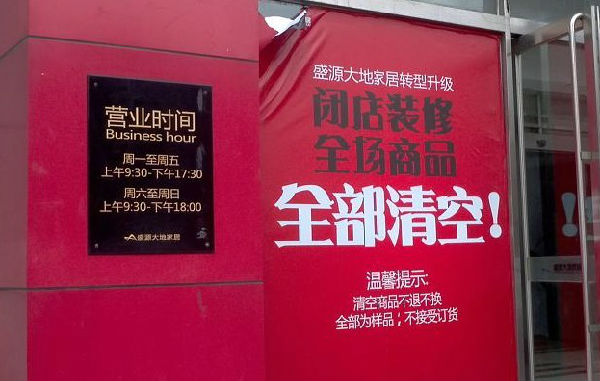 在今年8月的时候,沈阳一家网站就报道了《盛源大地深陷闭店传闻 家居卖场恐再成殇》,文中提到十月可能装修,而这几天盛源大地门前挂出的转型升级的通知。不知道转型是什么意思,而店内也开始清理样品,打折销售。