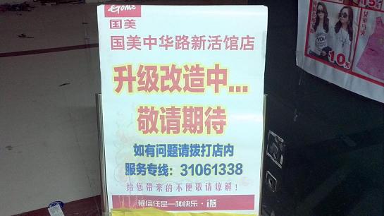 国美中华路新生活馆升级改造,目前已经全部关闭,正在进行装修。只有一部滚梯通往4楼的一家服饰店。(沈阳消费网) (责任编辑:admin) |