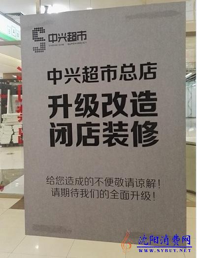 沈阳消费网讯,太原街中兴超市总店近日升级改造,闭店装修。大家注意,有购物可以去附近的沃尔玛超市。根据消费网收到消息,本次闭店改造或持续到9月,预计在9月8日重新开业。