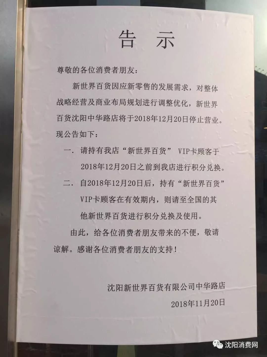 后来当年11月经过沈阳相关政府挽留,新世界百货中华路店又继续恢复营业,具体参见之前消费网报道:新世界百货公告将续经营沈阳中华路店