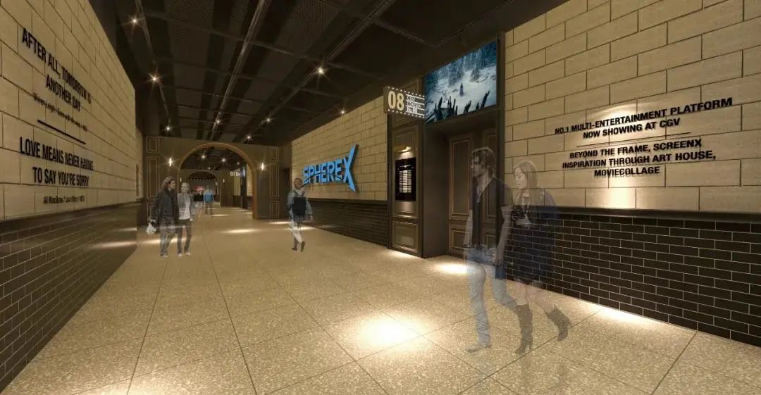 通过围绕观众 扩大至左右墙面的全景景像 不仅可以观赏到另一面的世界 而且可以体验到融入电影中的感受 Screen X摆脱现有屏幕框架的界限 将影院蜕变为全新空间