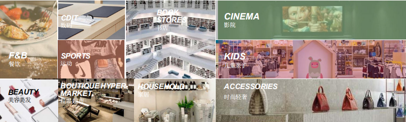规划影院、书店、数码、餐饮、儿童亲子、运动、 美容美发、时尚轻奢、家居、超市10大甄选业态 覆盖日常生活所接触的方方面面 创新消费场景的定制,创造全方位生活方式进阶