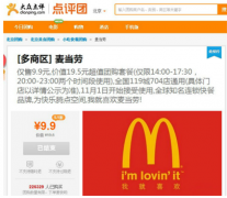 [逛街] 麦当劳团购事件,大众宣布作废并退款 日期:2013-10-29 21:54:00 点击:146 好评:0