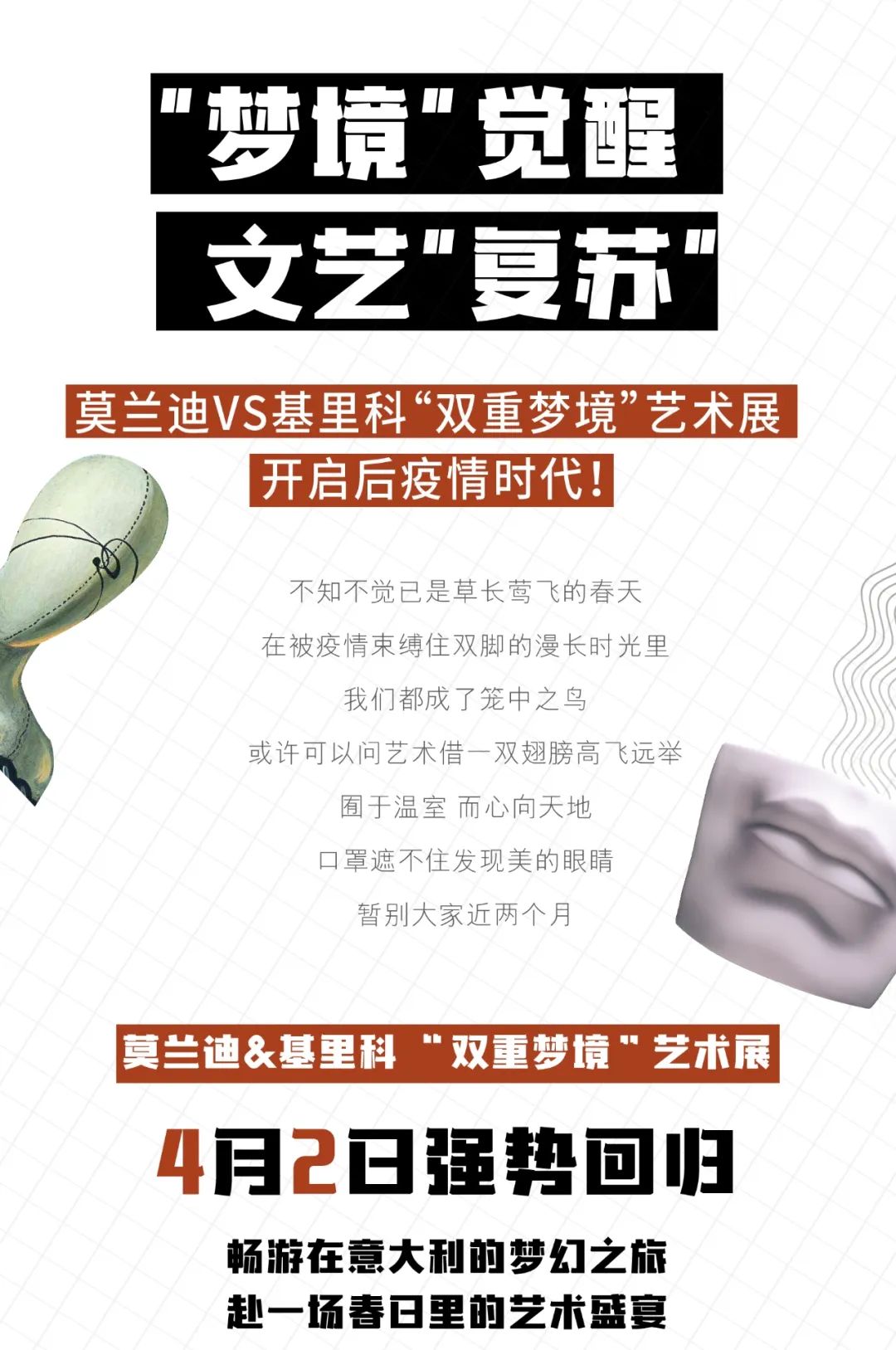 沈阳消费网为回馈消粉儿,正值莫兰迪&基里科“双重梦境”艺术展4月2日正式回归! 我们决定给予部分粉丝免费门票。