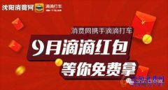 百万滴滴红包 9月 再次席卷沈阳,沈阳消费网请你打车! 滴滴打车现金红包 全城免费派送, 机会难得,数量有限哦! 操作办法: 第一步:关注消费网微信公众账号sybuy_net 第二步:回...