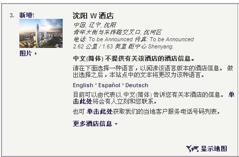 沈阳消费网报道:SPG官方网站最近新增了沈阳W酒店,地址位于沈河区青年大街与东纬路交叉口。预计开业时间2019年。 这是既沈阳已经开业的新都绿城喜来登酒店和即将在2016年开业的艾美酒店后,SPG集团官网明确标出在沈阳的第三家酒店。
