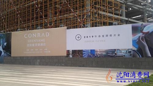 沈阳消费网讯,位于沈阳市府恒隆的希尔顿旗下康莱德酒店近日已经在楼下挂出围挡,2019年春夏开业。