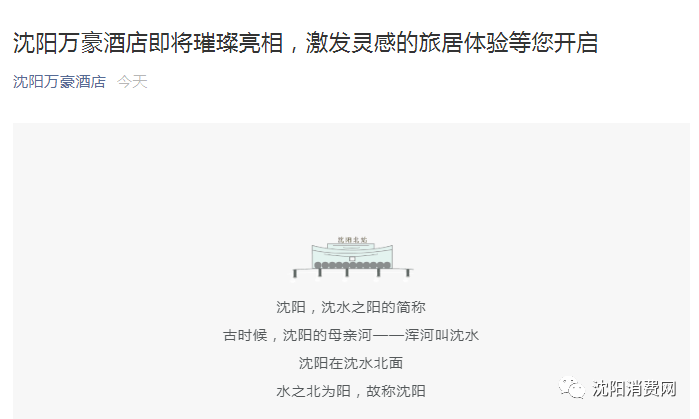 昨天,沈阳万豪酒店的官方微信公众号,发布了一条消息,首次提出即将开业的消息。