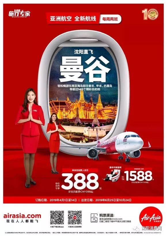 SHENYANG - Malaysia's low-cost airline AirAsia said Thursday it will launch a direct flight between Shenyang, capital of Northeast China's Liaoning province, and Bangkok on June 25. The 5-hour flight will be operated every Tuesday and Thursday on Airbus A330.