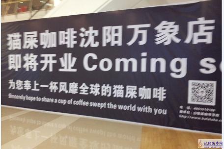 根据消费网资深网友“败家”提供信息,著名的猫屎咖啡沈阳万象城店围挡。此前,沈阳已经有一家猫屎咖啡,在万鑫酒店。 “猫屎咖啡的原料真的是猫屎,是从一种叫做麝香猫的粪便中提取出来,然后加工完成的。”
