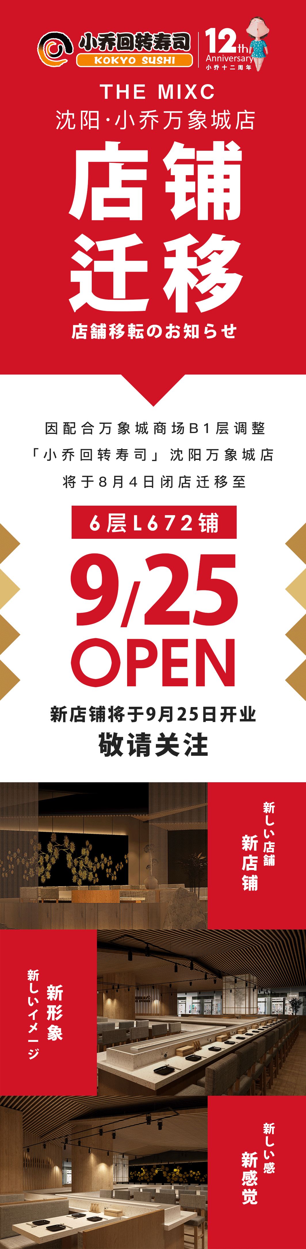 小乔回转寿司万象城店搬迁到6楼,9月25日开业