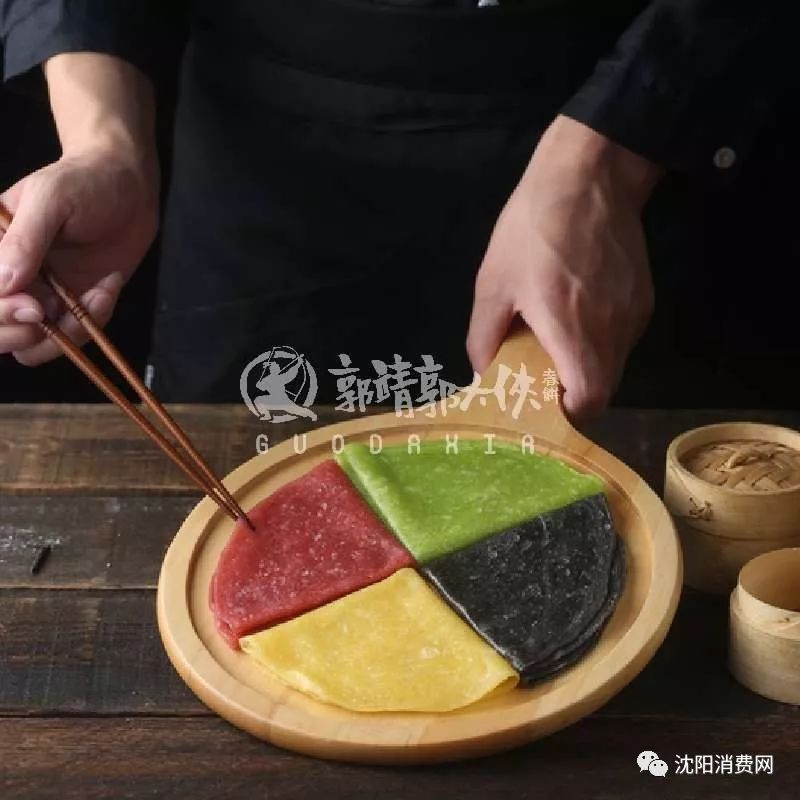 四色春饼是郭靖郭大侠品牌全国首创产品,果蔬汁经过特殊萃取和提炼才能与面粉相融合,形成制作春饼的面团。其中黄色为南瓜口味,红色为玫瑰口味,绿色为菠菜口味,黑色为墨鱼汁口味。同时品牌也推出原味春饼,麦香浓郁,口感劲道,薄厚均匀,嚼之富有弹性。春饼菜是春饼餐桌上必不可少的,顾客可根据自己的喜好口味和食材选择菜品,我们在设计卷饼菜时,充分考虑了食材和口味选择的多样性,从传统的春饼菜到研发的春饼菜,给顾客更充盈和满足的感受,才是我们所追求的的。在东北,聚会就餐时,凉菜是比不可少的餐中佳品。因此也逐步衍生出五彩拉皮、酱香脊骨等多款特色凉菜。我们将这些能够展现东北特色的菜品列入餐单中,让更多食客感受东北饮食的独到之处。同时郭靖郭大侠春饼最高程度的还原了东北老式代表菜的原型,除了耳熟能详的东北锅包肉外,更是推出了老式麻辣烫、童年小串等经典菜品,从精湛厨艺到视觉呈现,最大程度的表达出餐厅菜品中传统的东北特色。