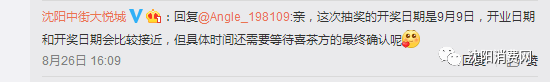 根据沈阳大悦城官方微博消息,开业时间应该在9月初。