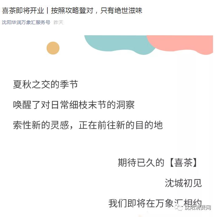 万象汇官方微信披露了喜茶万象汇店即将开业的消息