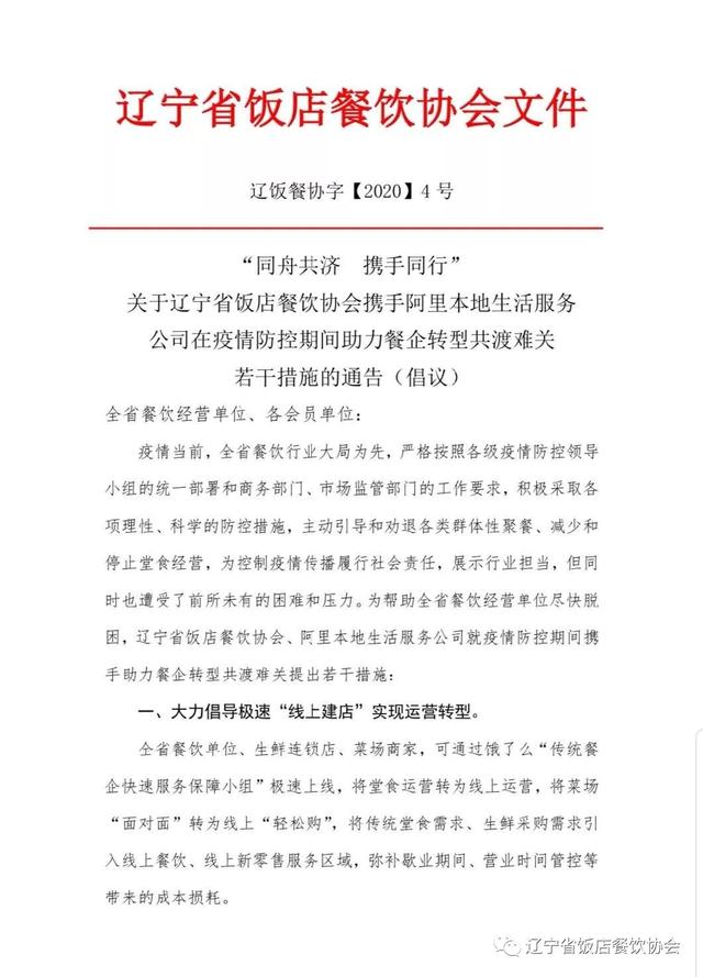 “同舟共济 携手同行”辽宁省饭店餐饮协会携手阿里本地生活服务公司在疫情防控期间推出七项帮扶措施助力餐企转型共渡难关。 ![]() ![]() ![]() ![]() ![]() 来源:辽宁省饭店餐饮协会 |