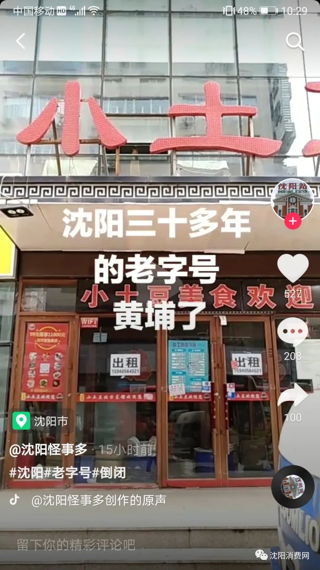 昨天DY上一个名为沈阳怪事多的网友发布消息,说三十年老字号小土豆黄了。