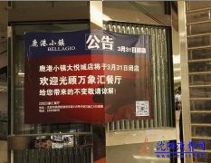 沈阳消费网网友爆料,位于中街大悦城A座4楼的鹿港小镇近日撤店,目前已经关闭,门前贴着公告,相关LOGO和标识已经撤下,目前还剩下铁西万象汇还有一家鹿港小镇。 鹿港小镇沈阳大...
