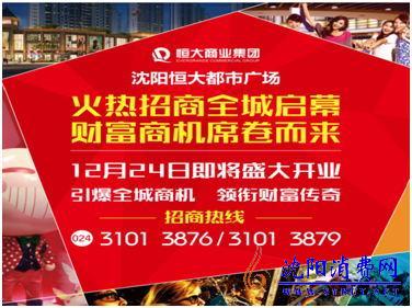 【12月24日盛大开业,抢占最后入驻机会】 恒大都市广场拥有近10万㎡占地规模,目前分为五一期和五二期进行开发,现针对沈阳恒大都市广场一期进行招商。截至目前,商场二层、三层招商工作已全部完成,一层商铺招商工作即将进入尾声,届时沈阳恒大都市广场五一期将于2016年12月24日盛大开业! 所以,这是您入驻恒大都市广场的最后机会,期待与有眼光的您共聚恒大,共创无限财富。