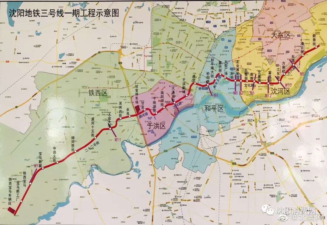 2019年12月28日,沈阳地铁三号线一期工程开工仪式在沈阳地铁大通湖街站举行。沈阳地铁三号线东起新泰街站,南至宝马新工厂站,线路全长41.27公里,设车站30座,其中在沈阳绕城高速以西采用高架线敷设方式,这将成为沈阳地铁首条具有高架车站的线路。 ![]()