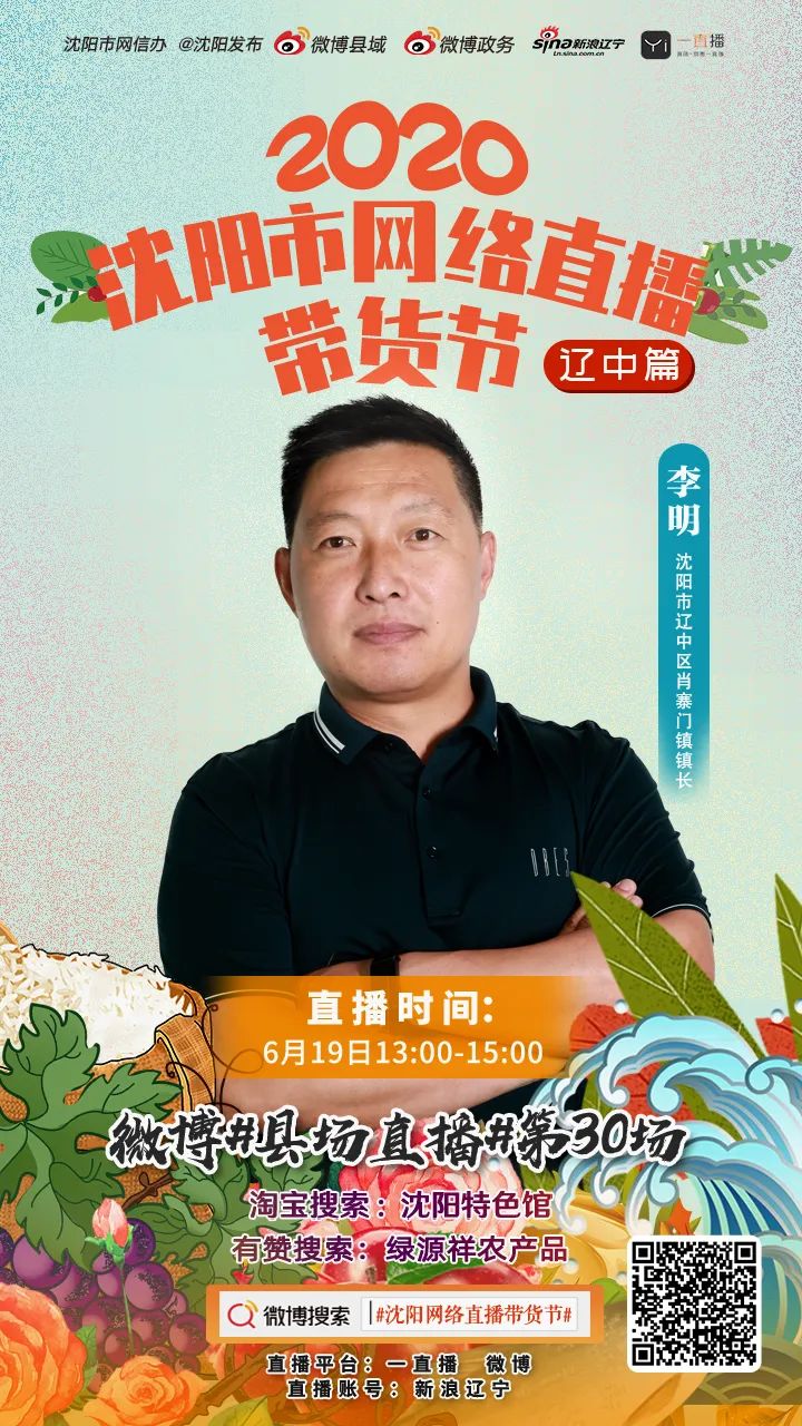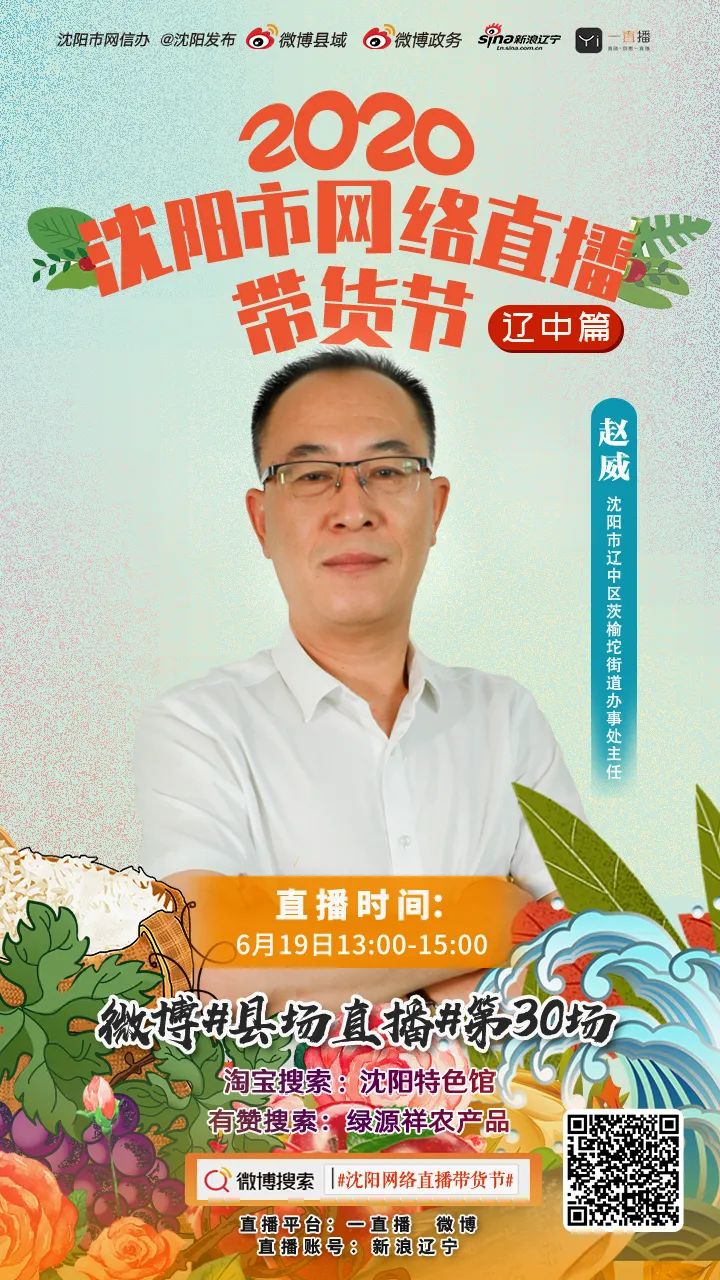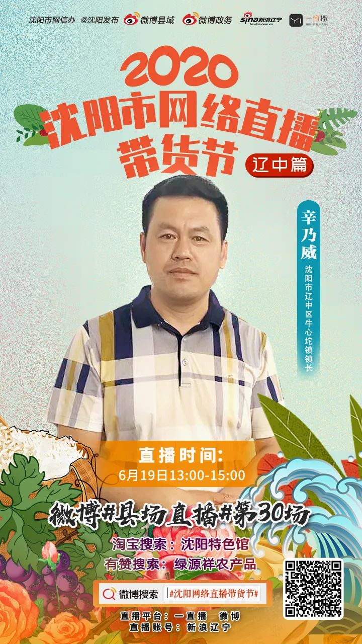 由市委网信办联合市商务局主办的“2020沈阳市网络直播带货节”走进辽中站将于2020年6月19日下午1:00,在沈阳市辽中区农村电商产业园隆重举行。