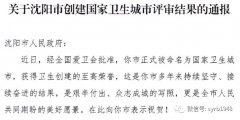 经全国爱卫会批准 沈阳市等4个城市(区) 被命名为国家卫生城市(区) 沈阳市正式进入 国家卫生城市行列 获得卫生创建的至高荣誉! 恭喜所有沈阳人 我们 喜提国家卫生城市称号...