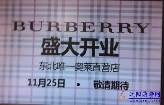 Burberry东北唯一奥莱店11月25日开业