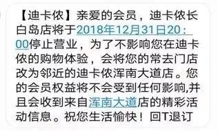 您好!感谢您及您的亲友一直以来对迪卡侬长白岛商场的大力支持。为了更好地服务沈阳运动爱好者,我们慎重决定于2019年1月1日起对迪卡侬长白岛商场进行选址调整,长白岛商场将营业至2018年12月31日20:00。