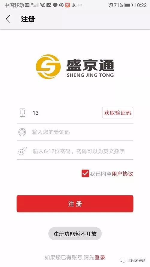 盛京通APP已经可以下载,但还不能注册