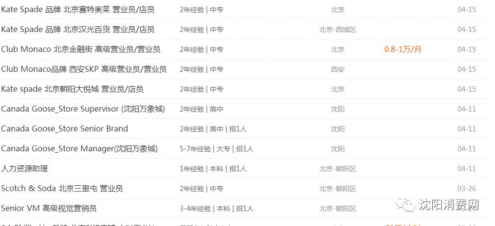 沈阳消费网网友爆料,加拿大高端户外品牌Canada Goose (加拿大鹅)或将落户沈阳万象城。网友提供了近期某招聘网站的一则招聘信息: