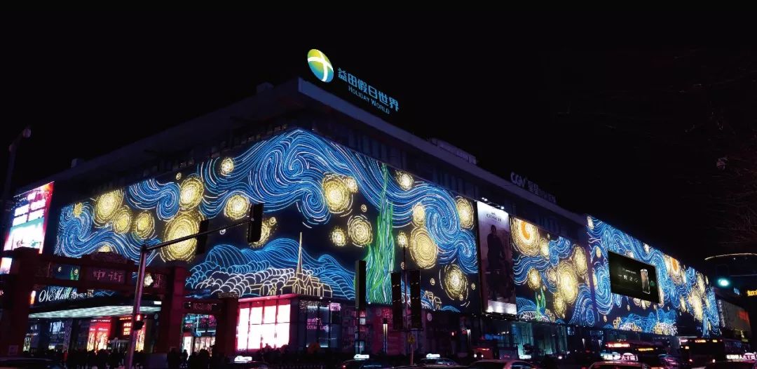 这是东西方艺术的一次共舞,也是益田假日世界购物中心对盛京最浪漫的问候方式。 在这里,不是只有白天才色彩缤纷,益田假日世界购物中心也为夜空上了色。