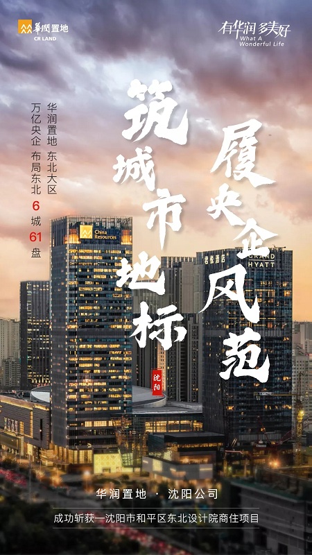2019年5月9日,东北大区沈阳公司获取和平区东北设计院地块商住项目,土地成交总价7.4亿元。