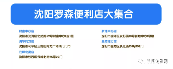 目前罗森便利店在沈阳已经开业门店统计: