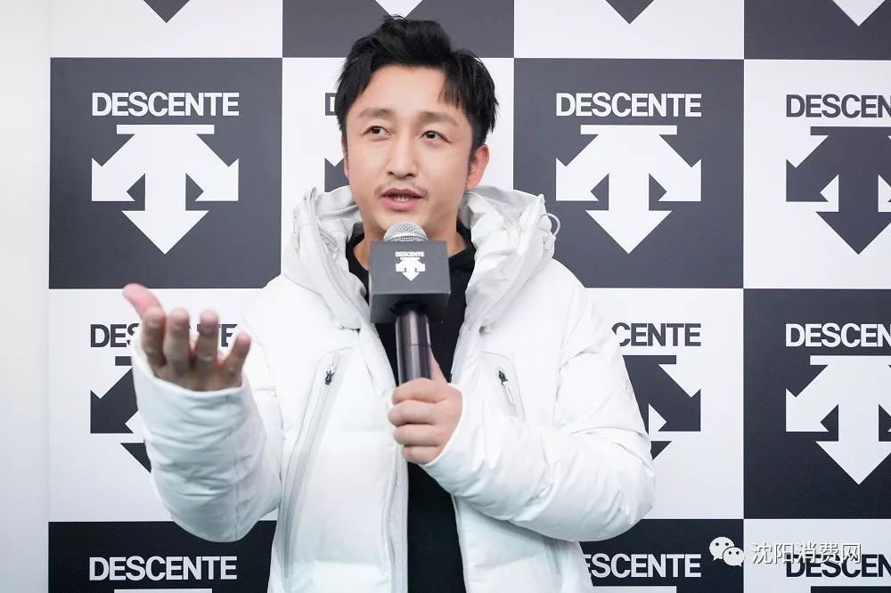 随后,迪桑特(中国)有限公司总裁梁夏準先生登台,赠送邹市明全地形系列中获得ISPO慕尼黑国际体育用品博览会金奖的经典款“风暴”水沢羽绒服,共同开启2019 DESCENTE迪桑特ALLTERRAIN全地形系列“形随意动”精品展沈阳站。