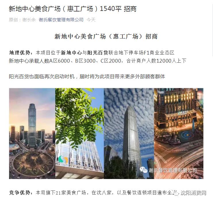 新地中心美食广场招商,阳光百货要重启?