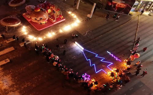 优美的歌声传荡在耳边,将现场所有人带进了圣诞的旋律中。鼻头冻得通红的圣诞老人不时将口袋中的糖果、荧光棒和气球分发给过往的行人,让空气中都弥漫开浓浓的圣诞味道。本次点灯仪式,采用了极其环保的点灯仪式,更是将整个活动推向高潮,柔和的LED灯光在圣诞老人们的脚踏车前不断延伸,最后汇聚成一道银色的闪电,照进了在场观众的心间,让众人一起见证了这温暖的瞬间。 ![]()