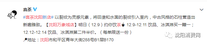 今年9月,喜茶首次进入沈阳,万象汇和大悦城双店开业,具体参见当时报道:喜茶沈阳双店齐开 首家热麦登陆大悦城 |