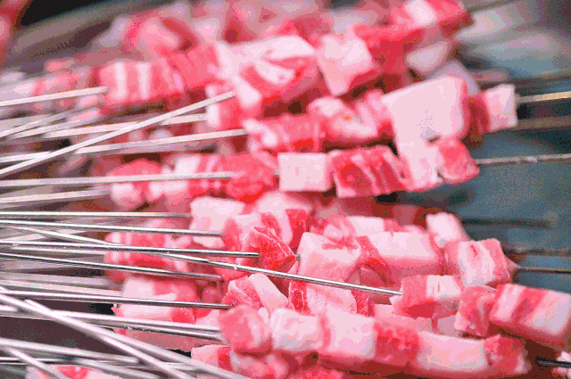 特别推荐大块肉,也就是烤油边,油边烤得太棒了,这是今年冬天吃过最香的烤串了,很多朋友问什么是油边,猪心脏附近的护心肉,护心肉去掉筋膜后所剩一条长条状瘦肉,富含大量油脂且形状细长而得名,必须挑选新鲜的猪护心肉,一头猪只有一条护心肉,当然极为珍贵。