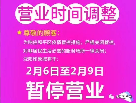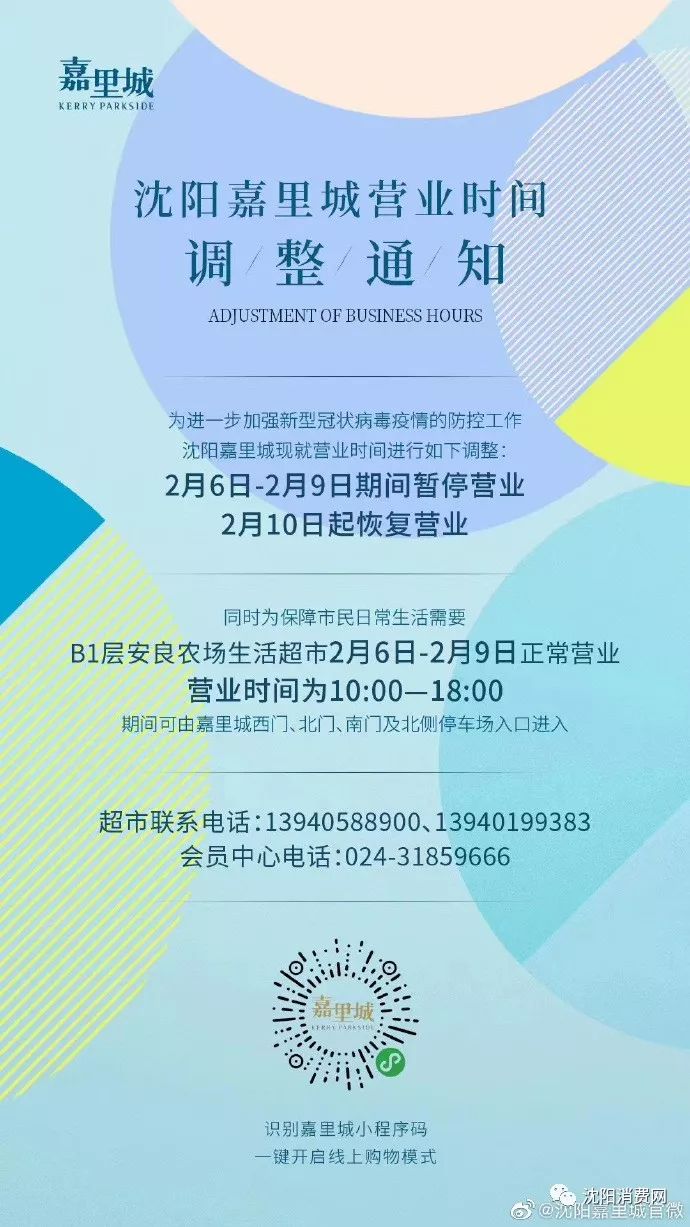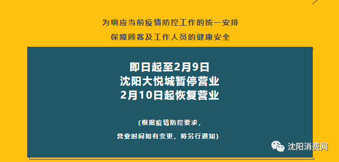 嘉里城、印象城、大悦城、盾安到2月9日闭店 时间:2020-02-07 14:53 来源:沈阳消费网 浏览:次 更多沈阳商场闭店信息及营业时间最新调整,欢迎查看我们公众号每天更新的帖子:沈阳各商场近期营业时间闭店统计(每日更新) 上一篇:商业城、茂业天地、联营、百盛6日-9日 暂时闭店 下一篇:兴隆大奥莱2月9日-16日闭店,2月17日开业