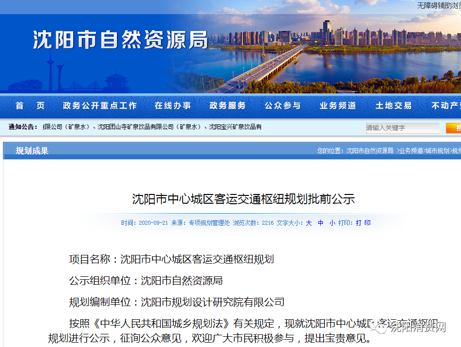 近日,沈阳自然资源局公布了沈阳市中心城区客运交通枢纽规划,按照《中华人民共和国城乡规划法》有关规定,现就沈阳市中心城区客运交通枢纽规划进行公示,征询公众意见。