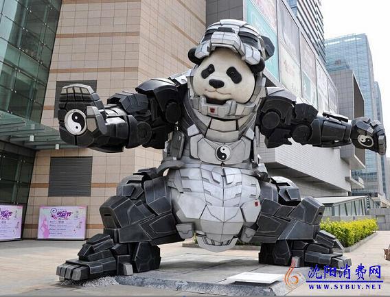 消费网讯:近日一尊身材健壮、憨态可掬的熊猫钢铁侠出现在沈阳中海环宇城门前。